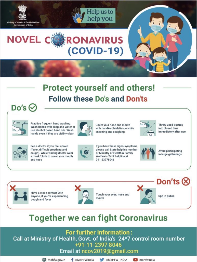 * ಬೇರೆ ಯಾವುದೇ ಸಂಶಯಗಳಿದ್ದರೂ ಕೇಂದ್ರ ಆರೋಗ್ಯ ಮಂತ್ರಾಲಯದ ಸಹಾಯವಾಣಿ ಸಂಖ್ಯೆ +911123978046 ಗೆ ಯಾವಾಗ ಬೇಕಾದರೂ ಕರೆ ಮಾಡಿ.