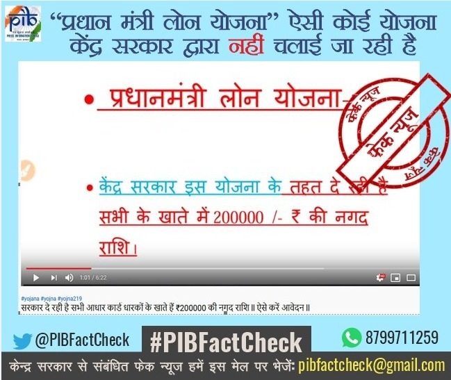 ಪಿಐಬಿ ಎನ್ನುವುದು ಭಾರತ ಸರ್ಕಾರದ ನೀತಿಗಳು, ಕಾರ್ಯಕ್ರಮಗಳು ಮತ್ತು ಸಾಧನೆಗಳ ಬಗ್ಗೆ ಪತ್ರಿಕೆಗಳು ಮತ್ತು ಎಲೆಕ್ಟ್ರಾನಿಕ್ ಮಾಧ್ಯಮಗಳಿಗೆ ತಿಳಿಸುವ ಪ್ರಮುಖ ಸಂಸ್ಥೆಯಾಗಿದೆ. ಅದು ತನ್ನ ಅಧಿಕೃತ ಟ್ವಿಟರ್ ಖಾತೆಯಲ್ಲಿ ಪ್ರಧಾನ್ ಮಂತ್ರಿ ಸಾಲ ಯೋಜನೆ ಇಲ್ಲ. ಇದು ಸುಳ್ಳು ಸುದ್ದಿ ಎಂದು ಖಚಿತಪಡಿಸಿದೆ.