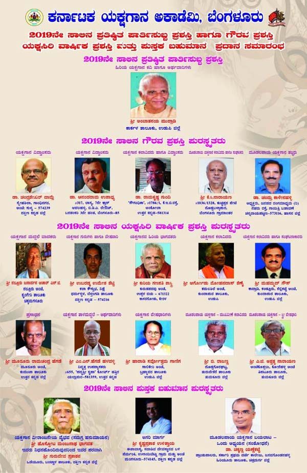 ಉತ್ತರ ಕನ್ನಡ ಜಿಲ್ಲೆಯ ಮೂವರಿಗೆ ಯಕ್ಷಗಾನ ಅಕಾಡೆಮಿಯಿಂದ ಪ್ರಶಸ್ತಿ